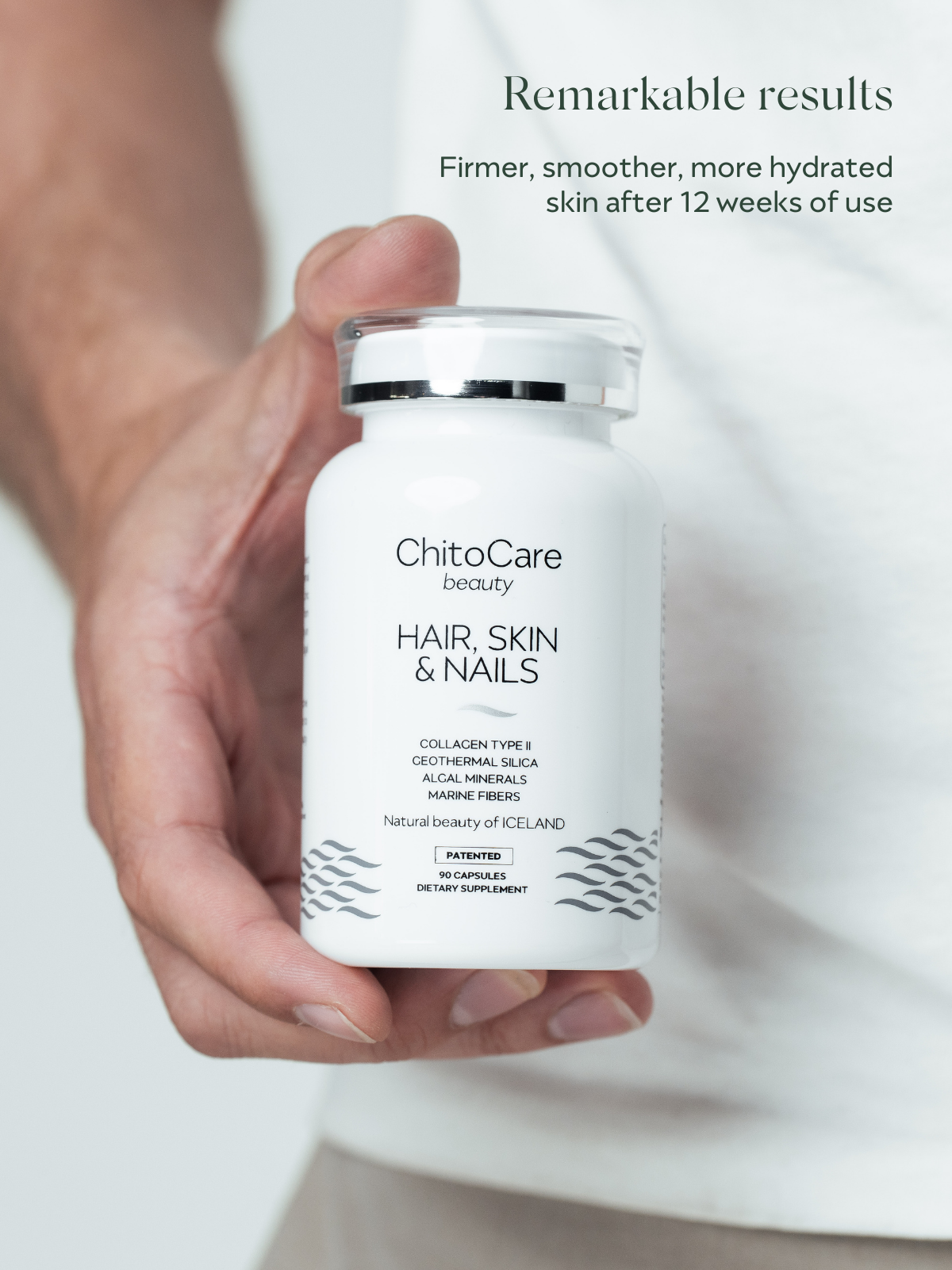 This unique blend of natural Icelandic and effective ingredients—including marine chitosan manufactured by an environmental-friendly patented process—provides the body with all the essential building blocks needed for strong and healthy hair, skin and nails, and contributes to their natural repair process.